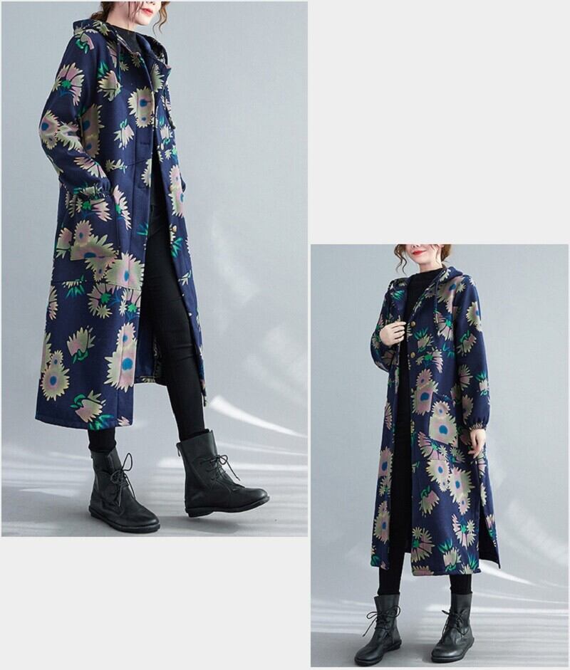 フード付き花柄裏起毛コートチェスターコート アウター秋冬