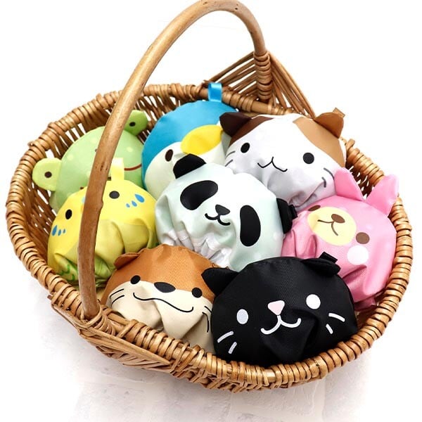 コロンとまるまる可愛いエコバッグ!ペットボトルの再生素材からできたリサイクル生地を使用しており、環境にも優しい商品です。バッグ部分を収納して巾着にすると、いろんなアニマルに変身!きれいに折りたたまなくても良いので楽ちんです。巾着とバッグがくっついていて、袋を失くす心配もありません!レジ袋の有料化が進む中、プレゼントにも喜んでいただけるアイテムです!