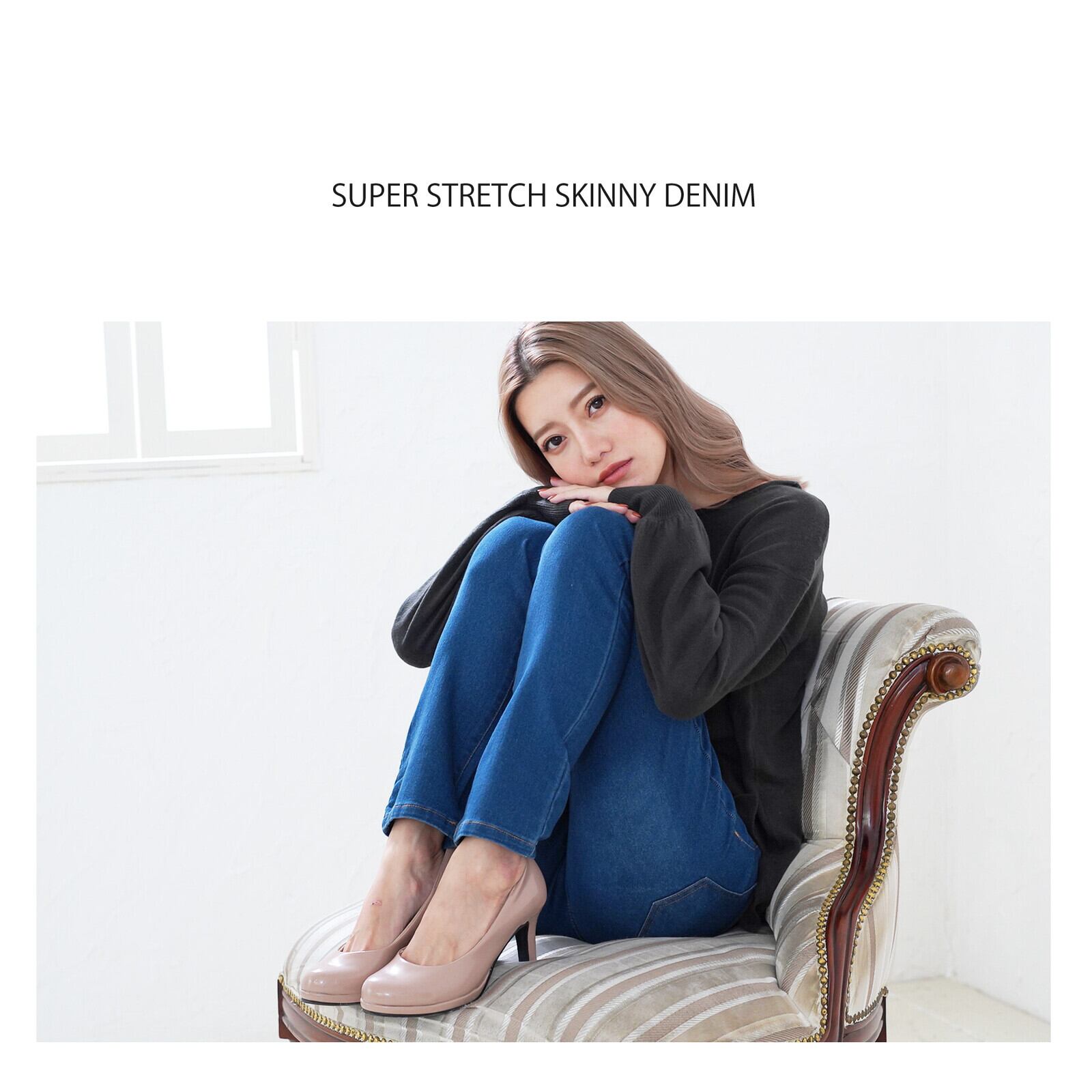 【美脚ストレッチフィットデニムスキニーパンツ】
